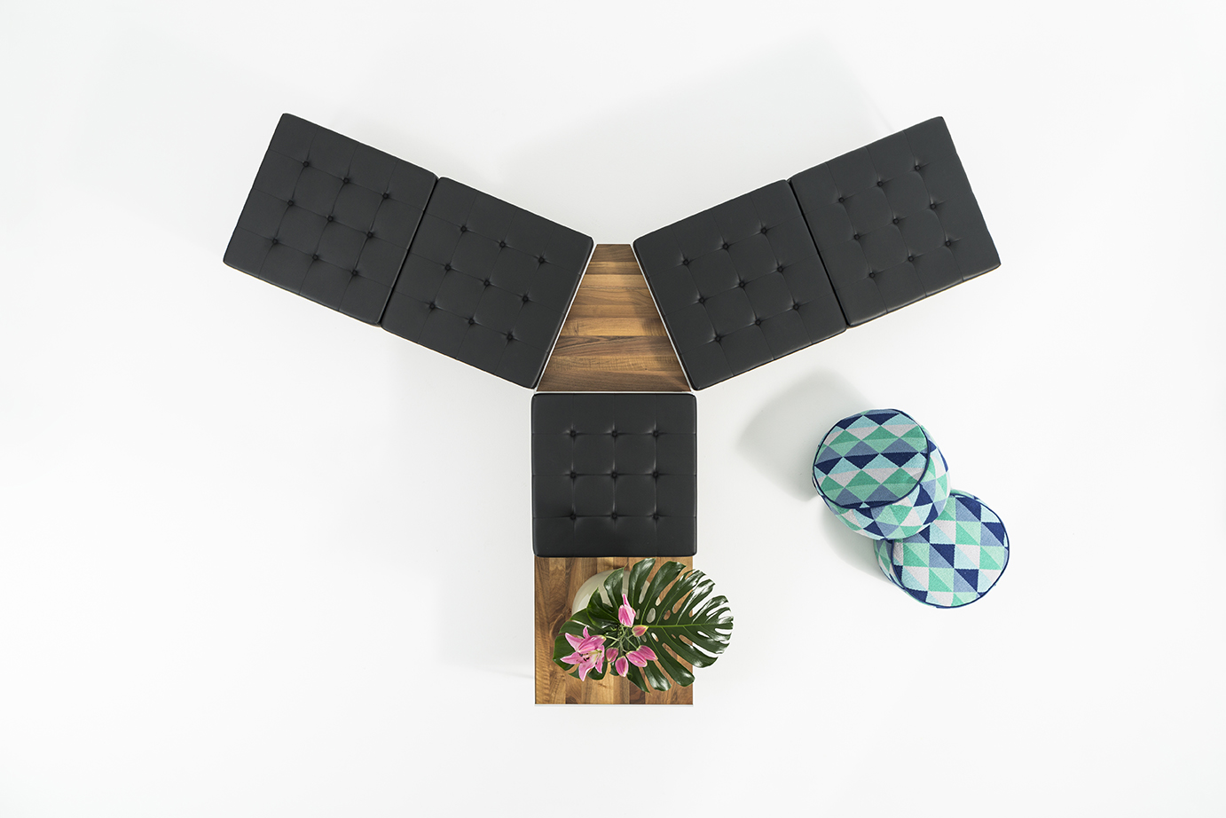 Jedes Modul lässt sich flexibel zusammen bauen: ob Tisch links, Tisch rechts, ein Polster, zwei Polster, mit oder ohne Rückenlehne, völlig egal, denn alles ist möglich und lässt sich mit nur einem Handgriff (auch spontan) verändern.