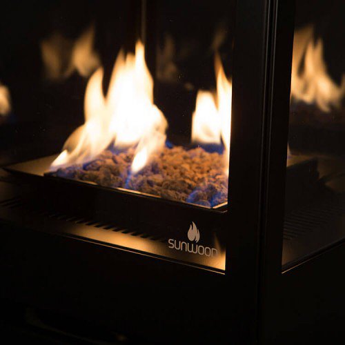 Und das bedeutet schicker Gaskamin statt unförmiger Heizpilz. Auch wenn der „Sunwood Marino“ mit seinen 6,5kW in Sachen Heizleistung dem klobigen Blechkonstrukt etwas unterlegen zu sein scheint, so macht das warme Licht der lodernden Flammen dieses mehr als wett. Die beruhigende Wirkung des kleinen Lagerfeuers gibt es gratis dazu...