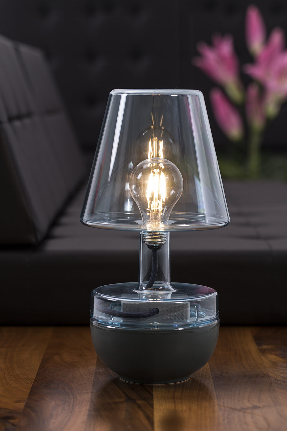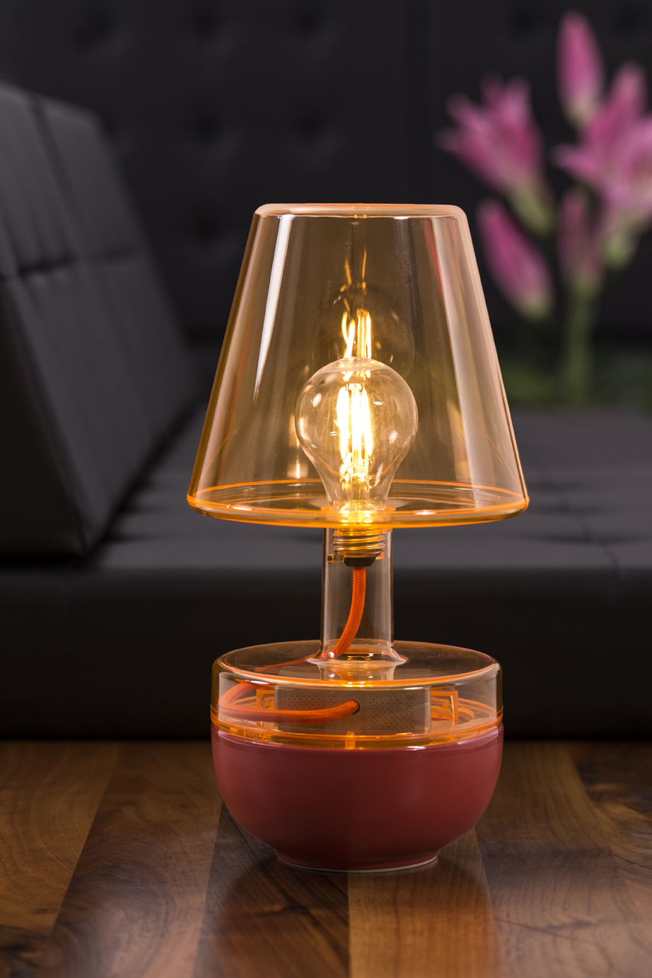 Unsere AKKU-betriebene Tischleuchte gibt es in blau oder orange. Top moderne Technik in top modernem Design verpackt: oben transparenter Kunststoff, unten ein Keramiksockel, im Inneren ein 3stufiger Touchsensor, LED-Leuchtmittel, textilummantelte Kabelführung, uvm